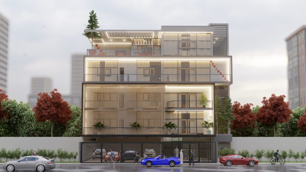 Un immeuble R+4 situé à Sol Béni, a usage équilibré de Résidence et de Bureau.